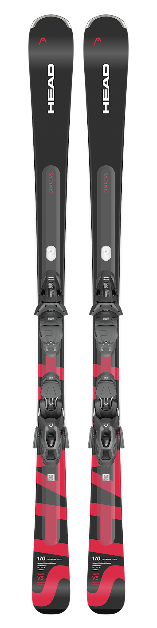 Fun and playful, the new Shape e.V5 is an easy-turning, frontside ski. The construction includes woodcore composite with sidewalls, enhanced in the front with HEAD's EMC technology, which absorbs negative vibrations creating a smoother ride. ERA 3.0 makes