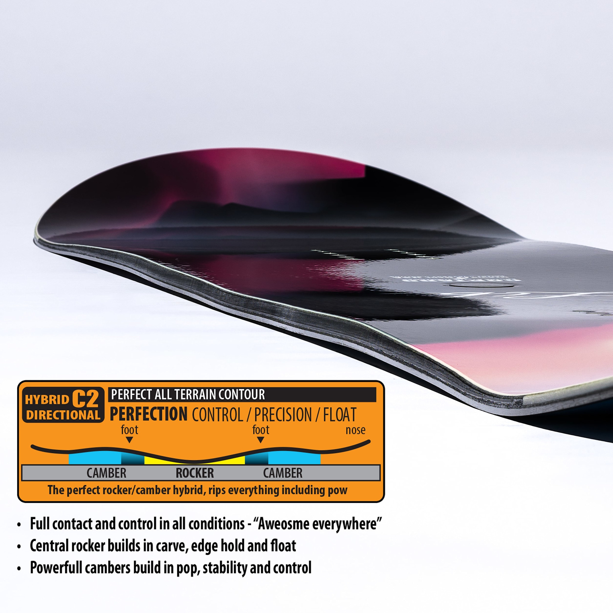• BALANCED PERFECTION WITH THE PERFECT CAMBER/HYBRID CONTOUR